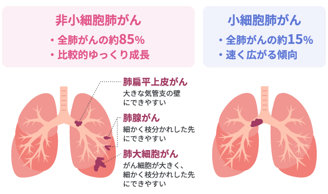 非小細胞肺癌と小細胞肺癌は、がんの進行や治療法に違いがあります。