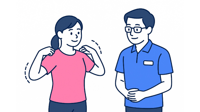 対処法としては、主治医や医療スタッフに相談のうえ、肩の周りの筋肉を動かすリハビリテーションを段階的に行うことがすすめられます。