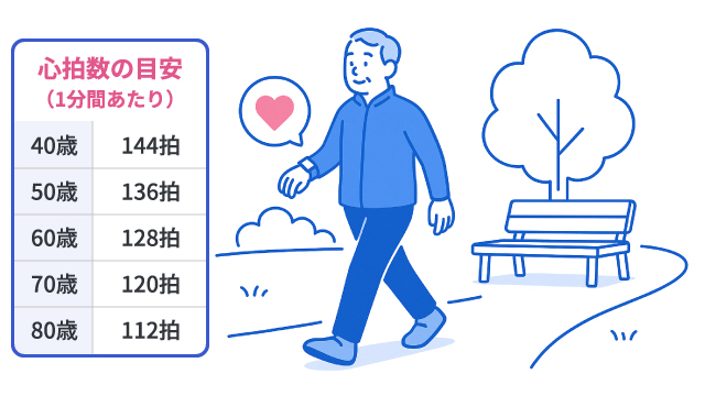 目安として、運動時の脈拍が(220−年齢)×0.8を超えない範囲にすると安全です(例:60歳なら1分間に128拍までの運動が目安)。